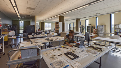 The new, 137,000 square foot facility houses some of the industry’s most advanced instrumentation and investigative laboratory spaces within a highly adaptable and flexible working environment. Large central identification laboratories provide space necessary for organizing physical remains and artifacts retrieved from recovery sites. Critical spaces such as imaging rooms for collecting comparison radiographs, orderly spaces for extracting mitochondrial DNA, and storage for material evidence also support research activities that are necessary to obtain a positive identification.