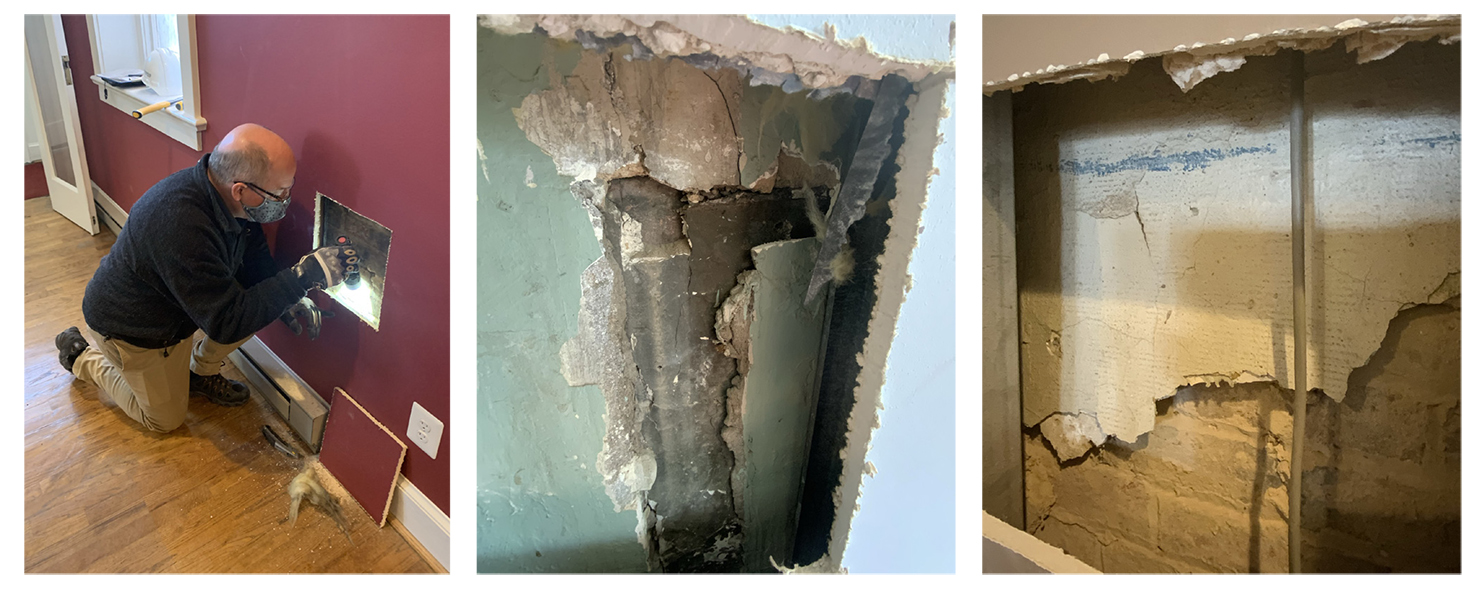 Historic photos and material analysis also aided in documenting construction history. Using probes and other sampling tools, the team examined paint, plaster, brick, mortar and wood samples to determine the date of various renovations and additions.