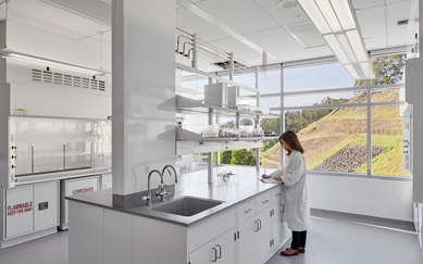 The crux was to design and deliver 39,000 square feet of research space—adhering to stringent vibration and light requirements—on a small site within a compact core of interactive research facilities, on a sloping hillside.