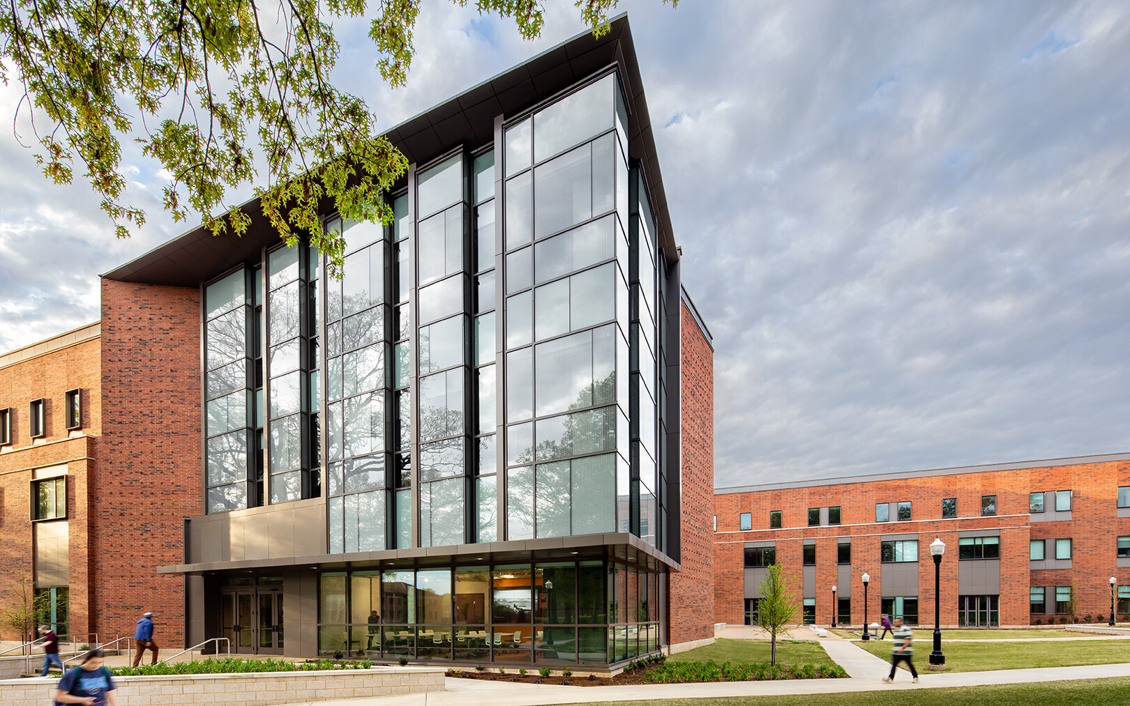 With its sweeping glass curtainwall and outdoor maker spaces, the Latimer-Smith Engineering and Science Building evokes a future focus and an invitation to engage with its STEM learning opportunities. The design expresses three critical paths for STEM success: experiential team-based learning and exploration, exposure to research early in a student’s academic career, and inclusive learning communities. Its array of teaching and research labs, fabrication shops and varied social learning settings fulfills UTM’s desire to create an exciting new environment for STEM education and a vital addition to the UT Martin campus.